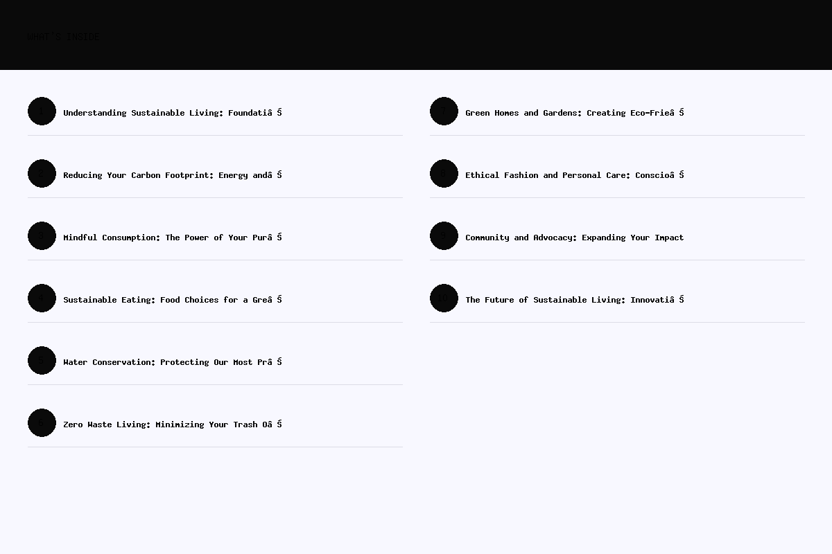 - Chapter 10: The Future of Sustainable Living: Innovations and Challenges