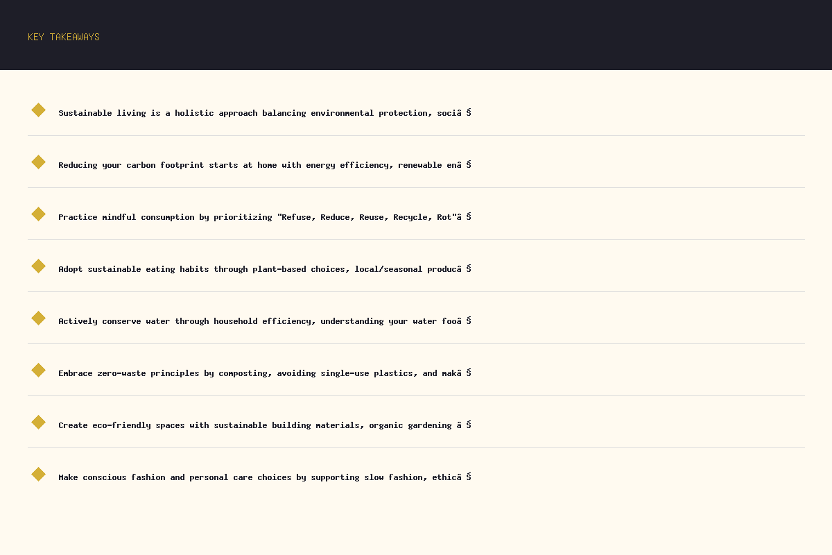 - Sustainable living is a holistic approach balancing environmental protection, social equity, and economic viability.